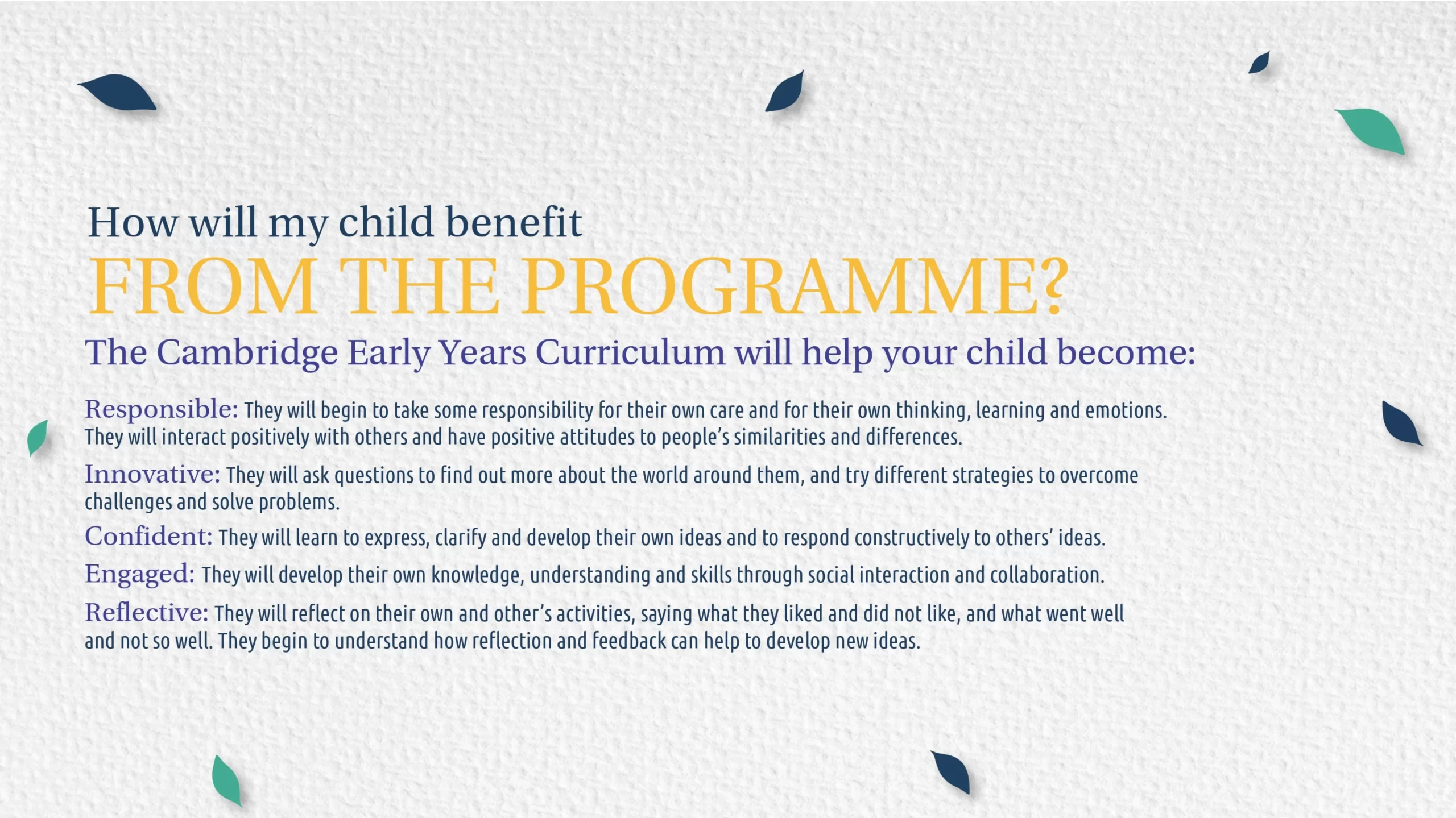 EARLY YEARS – 1 & 2